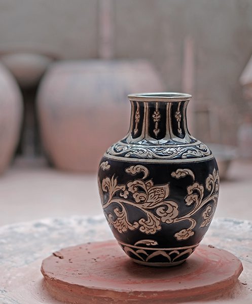 * Gốm tạo hình từ bàn xoay và áp dụng nhiều kỹ thuật truyền thống như cán ghép, chạm lọng, đắp nổi, cạo nổi, khắc chìm yêu cầu tay nghề cao và kinh nghiệm lâu năm của người thợ gốm.